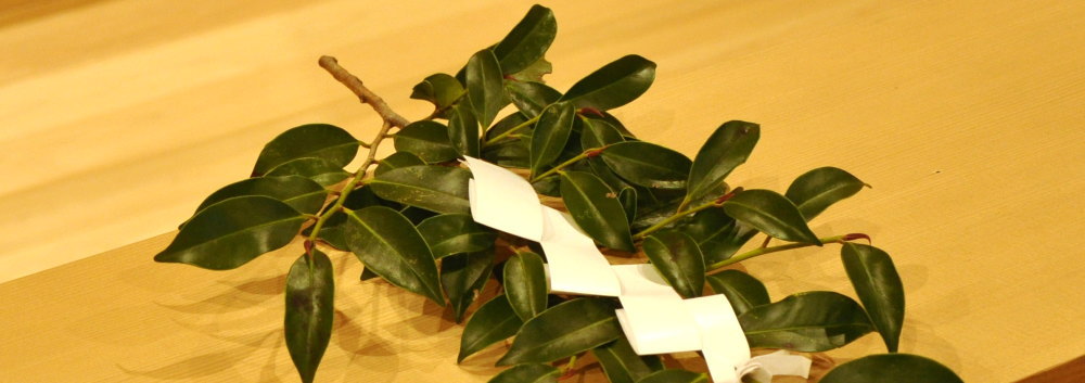 ご祈祷の中では、祈願主の方に雷型の紙垂(しで)という紙をつけた玉串(榊の枝)をお供え頂きます。この時の作法は以下になります。