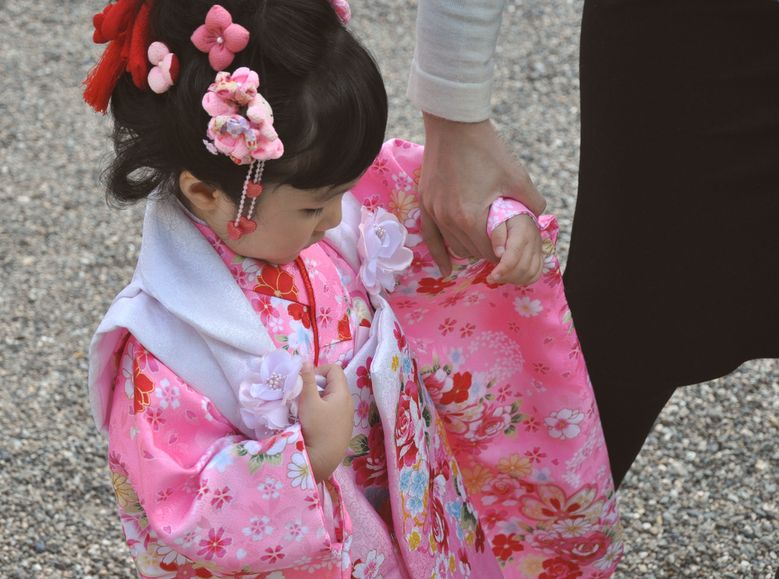 一般的に男児は、三歳と五歳、女児は三歳と七歳に晴着をまとって氏神さまへお参りし、無事成長したことに感謝し、また今後もますます元気に成長することを祈願します。