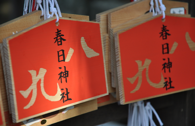 御祈祷を受けられた方には、写真のような「八九」の文字に色が抜かれた絵馬を授与しております。「八九」は「やく」と読み、厄が抜き落とされていることを意味しています。