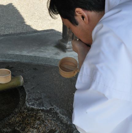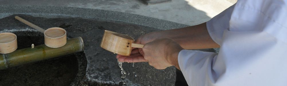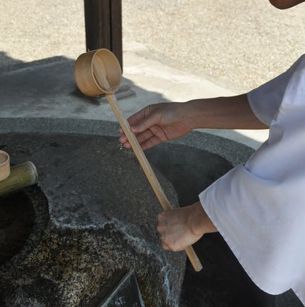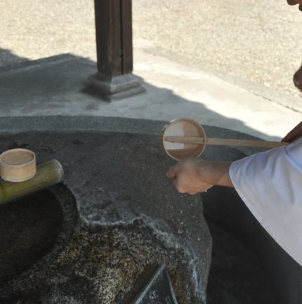 ※ ひしゃくに直接 口を つけてはいけません。ご注意ください。