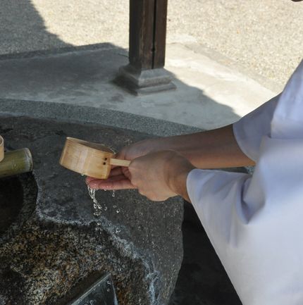 ② 次に左手にひしゃくを持ちかえ“ 右手 ”を清めます
